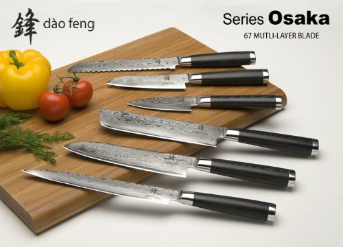 This stunningly beautiful line of Japanese style knife features the look and benefits of Molybdenum Vanadium steel.The steel pro?le reduces sticking and results in less damage to the food being cut and faster. Extra Sharp Molybdenum Vanadium Blade with HRC up to 55. Non-Slippery Soft Grip in Deluxe Santoprene for Comfortable Holding. Quality Stainless Steel Bolster and End Cap to Balance the Knife Weight Read more...